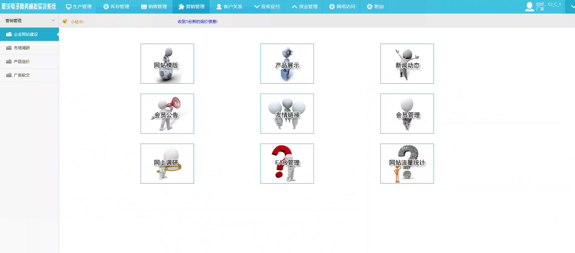 創(chuang)業模擬(ni)實踐:聚焦 B2C、C2C 模式,支(zhi)持網站后臺注(zhu)冊、交易模擬(ni),模擬(ni)個人或企(qi)業創(chuang)業的核心環(huan)節;
