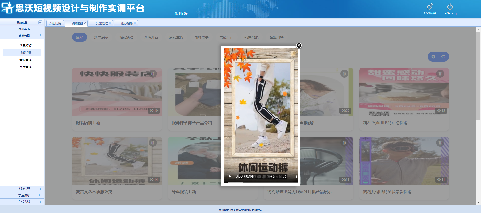 思(si)沃短視(shi)頻設(she)計(ji)與(yu)制作實訓(xun)平臺,是(shi)專為(wei)短視(shi)頻設(she)計(ji)與(yu)制作教(jiao)(jiao)學(xue)(xue)(xue)場景(jing)打造(zao)的(de)實訓(xun)軟件。平臺支持管理員、教(jiao)(jiao)師、學(xue)(xue)(xue)生多(duo)角(jiao)色(se)協(xie)同(tong)作業(ye)(ye),整(zheng)合教(jiao)(jiao)學(xue)(xue)(xue)管理、素(su)材資源管理、實驗實訓(xun)、作品創作、考(kao)核(he)評價(jia)五(wu)大(da)核(he)心功能,旨在通過實操(cao)訓(xun)練提升學(xue)(xue)(xue)生的(de)短視(shi)頻剪(jian)輯與(yu)創作能力,可精準滿足職業(ye)(ye)教(jiao)(jiao)育、高(gao)等教(jiao)(jiao)育中數字媒體、影視(shi)制作等相(xiang)關專業(ye)(ye)的(de)教(jiao)(jiao)學(xue)(xue)(xue)需求;同(tong)時,系統已內(nei)置 10000+ 視(shi)頻、音頻、圖片等素(su)材資源,為(wei)教(jiao)(jiao)學(xue)(xue)(xue)與(yu)實訓(xun)提供充(chong)足支持。