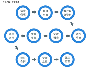 實訓主體(ti)分五類流(liu)程:短(duan)期貸款(kuan)(kuan)(kuan)(kuan)、長(chang)期貸款(kuan)(kuan)(kuan)(kuan)、票據貼現、個人(ren)住房抵押貸款(kuan)(kuan)(kuan)(kuan)、個人(ren)汽車消(xiao)費(fei)貸款(kuan)(kuan)(kuan)(kuan)。提供靈活的(de)業務流(liu)程控制,包括信貸受理、資格審(shen)查、貸款(kuan)(kuan)(kuan)(kuan)調查、貸款(kuan)(kuan)(kuan)(kuan)審(shen)批、落實條件、簽訂合同、貸款(kuan)(kuan)(kuan)(kuan)發放、貸后管(guan)理等步驟。