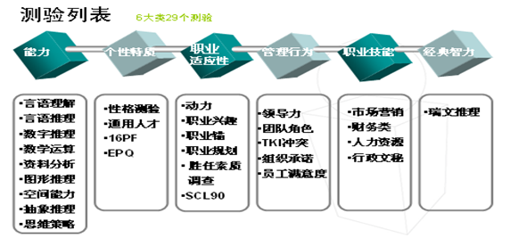 標準化(hua)測(ce)(ce)(ce)驗(yan)。標準化(hua)的測(ce)(ce)(ce)驗(yan)包括客觀的計分(fen)系(xi)統(tong)、解(jie)釋系(xi)統(tong)、常模(mo)、信度(du)和(he)效(xiao)度(du)等數據(ju)。具有方便、經濟(ji)、客觀等優點。根據(ju)測(ce)(ce)(ce)驗(yan)的內容(rong)可以分(fen)為(wei):經典智力測(ce)(ce)(ce)驗(yan)、能力測(ce)(ce)(ce)驗(yan)組、個性特(te)質測(ce)(ce)(ce)驗(yan)、職業(ye)適(shi)應(ying)性測(ce)(ce)(ce)驗(yan)、管理行為(wei)測(ce)(ce)(ce)驗(yan)、專業(ye)技能測(ce)(ce)(ce)驗(yan)。
