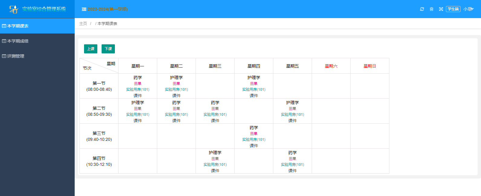 本(ben)(ben)學(xue)期(qi)課表,本(ben)(ben)學(xue)期(qi)成績,評(ping)測管理(li)。