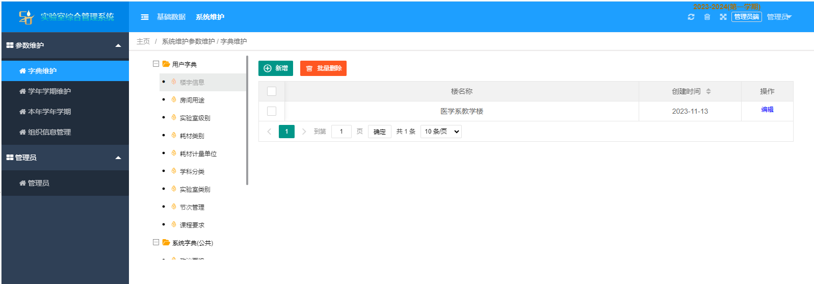 系統維護(參數維(wei)護(字(zi)典維(wei)護,學年學期維(wei)護,本年學年學期,組(zu)織信息管理),管理員)。