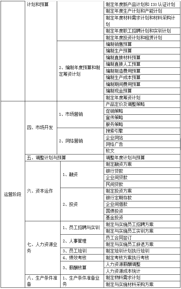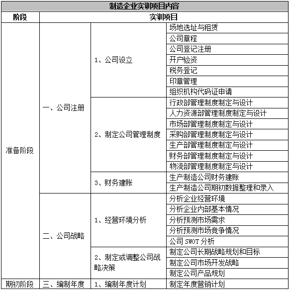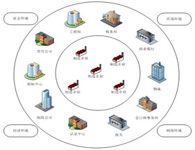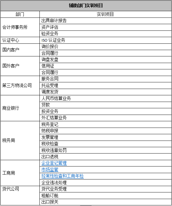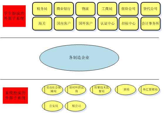 跨(kua)專(zhuan)業(ye)平臺(tai)主要由(you)搭建平臺(tai)運(yun)行(xing)(xing)(xing)環境、制(zhi)造企(qi)(qi)業(ye)運(yun)營、行(xing)(xing)(xing)政業(ye)務(wu)和金(jin)融(rong)(rong)業(ye)務(wu)等幾大(da)部分(fen)組成。以現(xian)代制(zhi)造行(xing)(xing)(xing)業(ye)為藍本,設置(zhi)總(zong)經(jing)理辦(ban)公(gong)室、銷售部、生產部、采(cai)購部、倉儲部、外(wai)貿部、市場(chang)部、財(cai)務(wu)部、人(ren)才(cai)資源部、企(qi)(qi)業(ye)投(tou)資融(rong)(rong)部等十大(da)制(zhi)造企(qi)(qi)業(ye)職能部門(men);真實模擬(ni)行(xing)(xing)(xing)政辦(ban)事部門(men),提(ti)供工商局(ju)、稅務(wu)局(ju)、會計事務(wu)所、銀行(xing)(xing)(xing)、物流、保(bao)險公(gong)司(si)、貸代公(gong)司(si)等辦(ban)事場(chang)所;系統虛擬(ni)扮演公(gong)安局(ju)、質量與技術監督局(ju)、勞動與社會保(bao)障局(ju)、原材料供應商、海關(guan)、商檢(jian)、外(wai)匯(hui)管(guan)理局(ju)、船公(gong)司(si)等服務(wu)性部門(men)行(xing)(xing)(xing)業(ye)。攘括了(le)與制(zhi)造行(xing)(xing)(xing)業(ye)有關(guan)的所有相關(guan)行(xing)(xing)(xing)政辦(ban)事部門(men)和服務(wu)性行(xing)(xing)(xing)業(ye)。