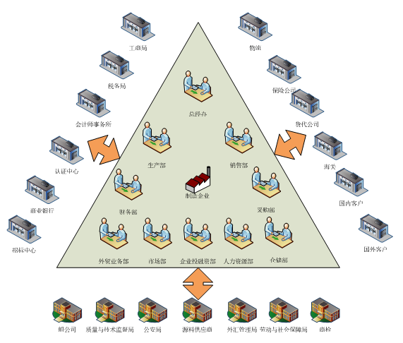 核心系(xi)統(tong)(tong)指的是制造企業內(nei)部經營和管理系(xi)統(tong)(tong),由(you)總(zong)經理辦(ban)公室、銷售(shou)部、生產部、采(cai)購部、倉儲部、外(wai)貿(mao)部、市場部、財務部、人才資源(yuan)部、企業投資融資部等部門構成,下設21個崗位,各施其職,來完(wan)成企業的運作。