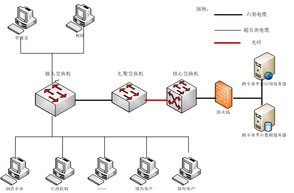整個網絡設(she)計以(yi)千兆(zhao)為主干,百(bai)兆(zhao)到(dao)桌面的(de)結(jie)構,匯聚層交換機(ji)通過千兆(zhao)光纖連(lian)接到(dao)核心交換機(ji),再通過千兆(zhao)電(dian)纜連(lian)接到(dao)接入層交換機(ji),這樣(yang)的(de)設(she)計結(jie)構具有層次化設(she)計節(jie)約(yue)線路成本、保障安(an)全(quan)、便于管(guan)理、擴(kuo)展靈(ling)活等特點。